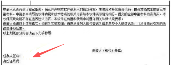 3、申请人须手抄写登记相关声明内容,确认软件为独立开发、未使用 AI 开发编写代码/ 撰写文档/ 生成申请材料,保证申请材料真实、软件功能合规,承诺对信息失实、欺骗行为承担列入版权登记失信名单、纳入个人征信记录及相应法律责任。